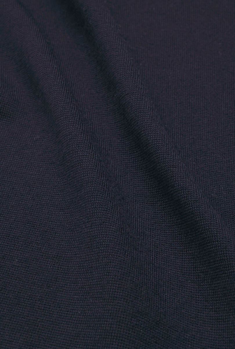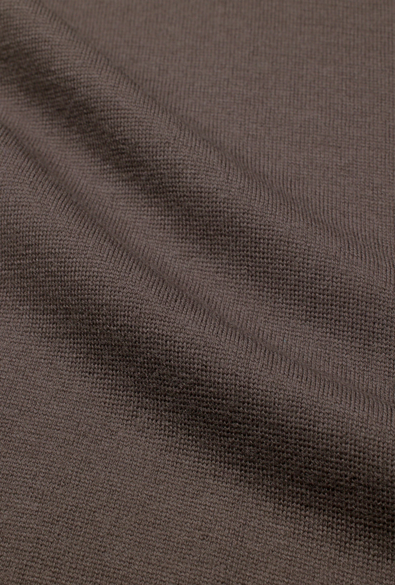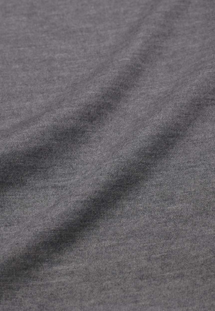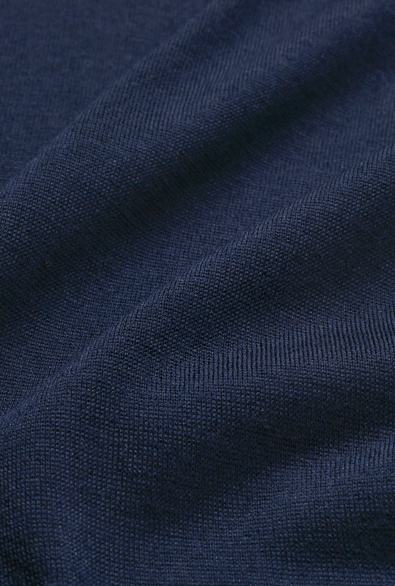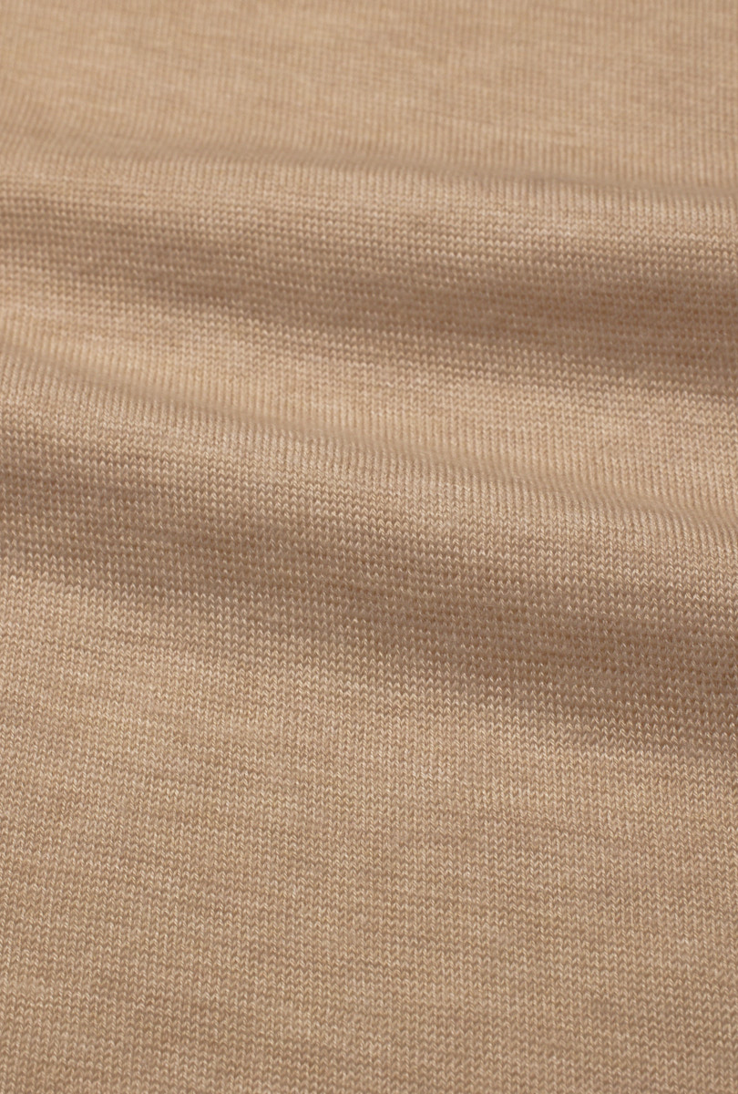 A matte and versatile look, a summery and sustainable composition: 50% merino wool, 50% GRS-certified recycled polyamide. Designed to create more casual looks, its fine gauge does not exclude the refinement of detail in knitwear.