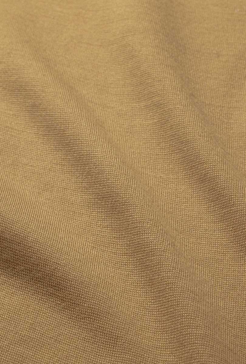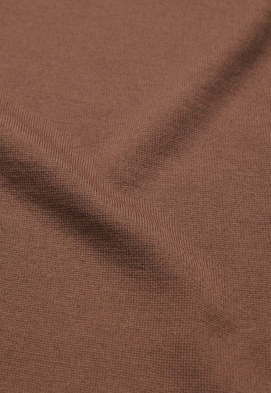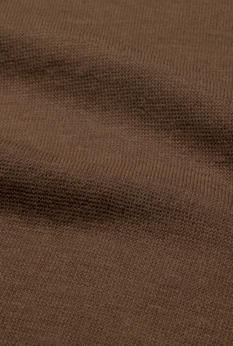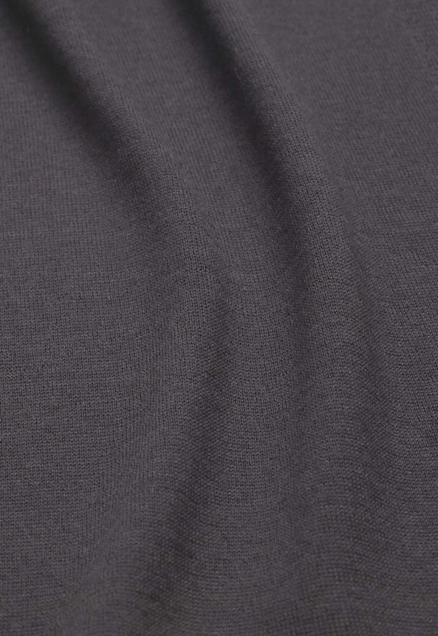 A matte and versatile look, a summery and sustainable composition: 50% merino wool, 50% GRS-certified recycled polyamide. Designed to create more casual looks, its fine gauge does not exclude the refinement of detail in knitwear.