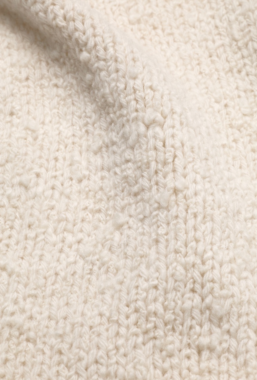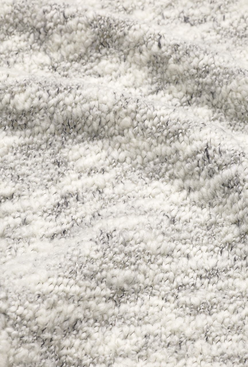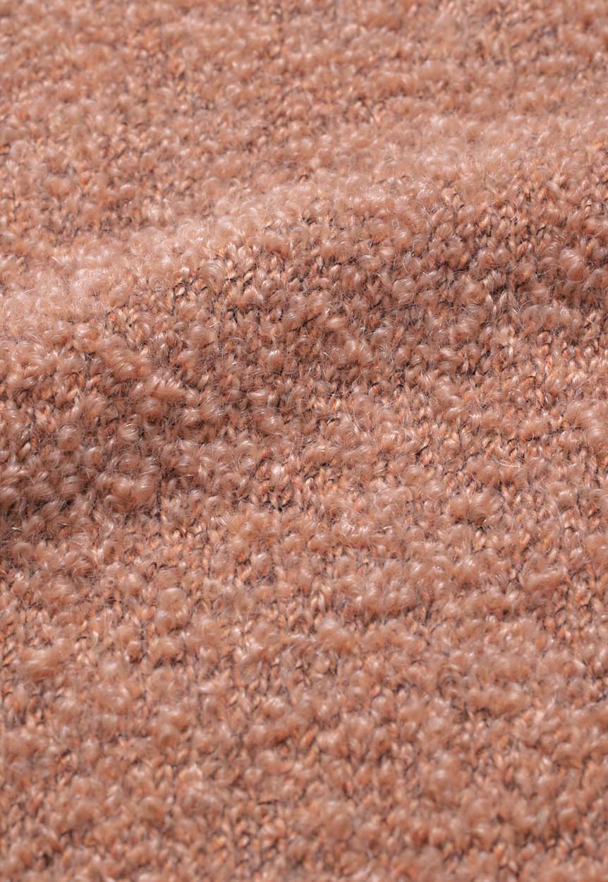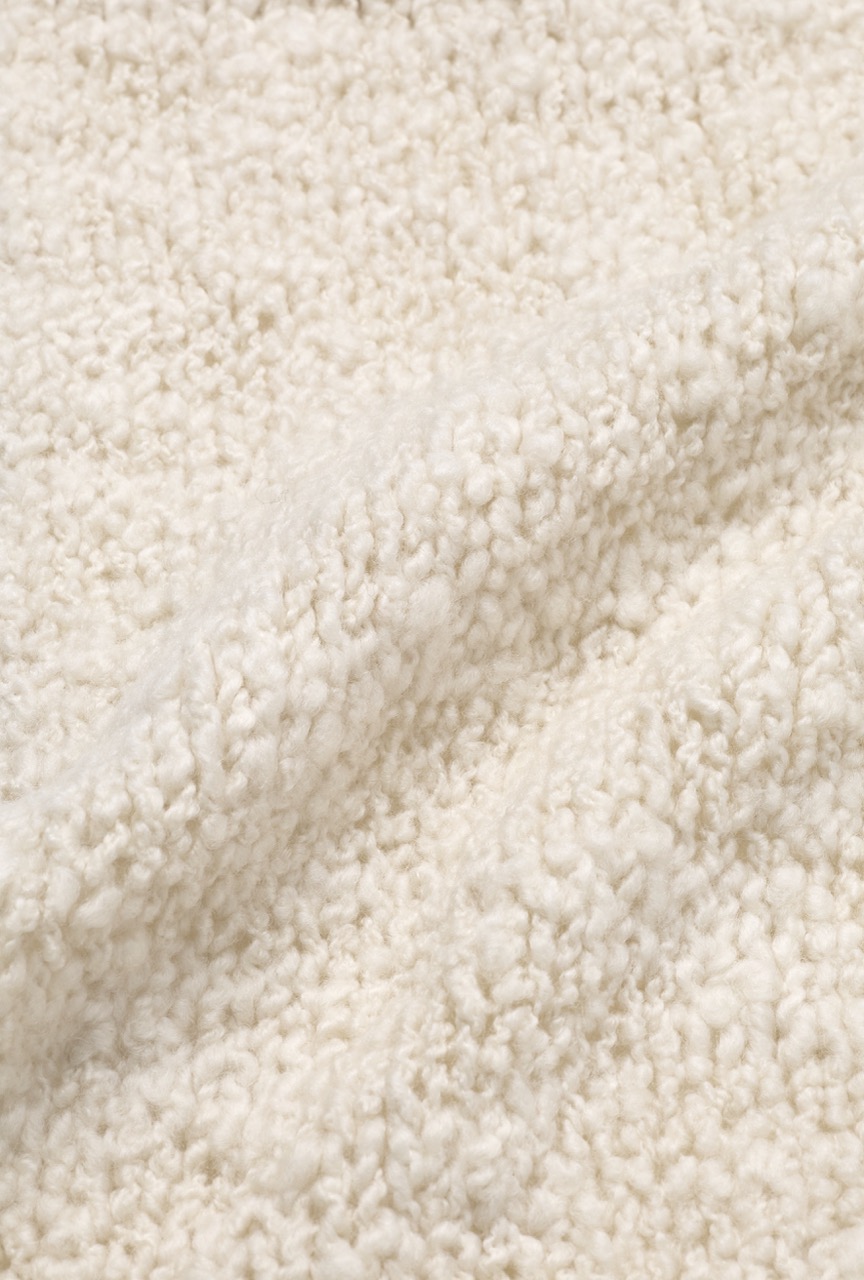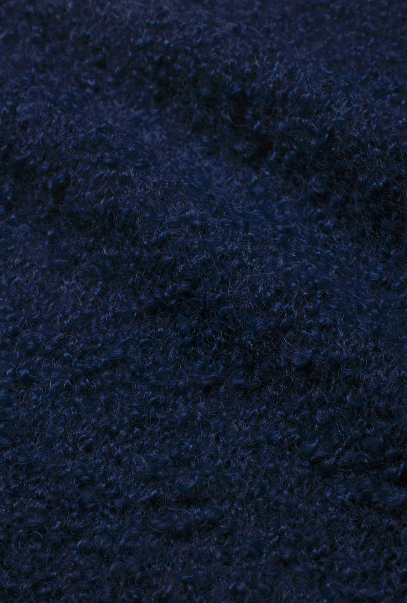 A voluminous boucle yarn with a precious composition mohair, wool and silk.