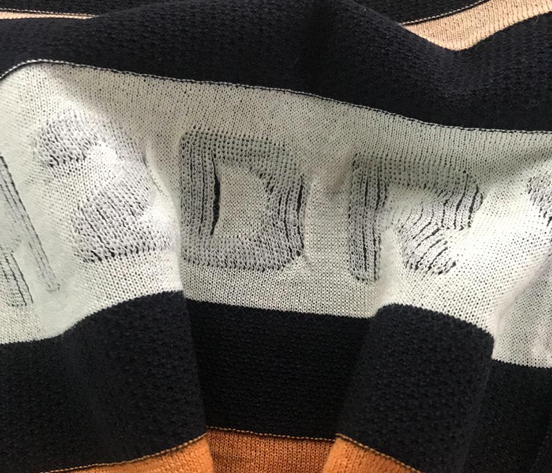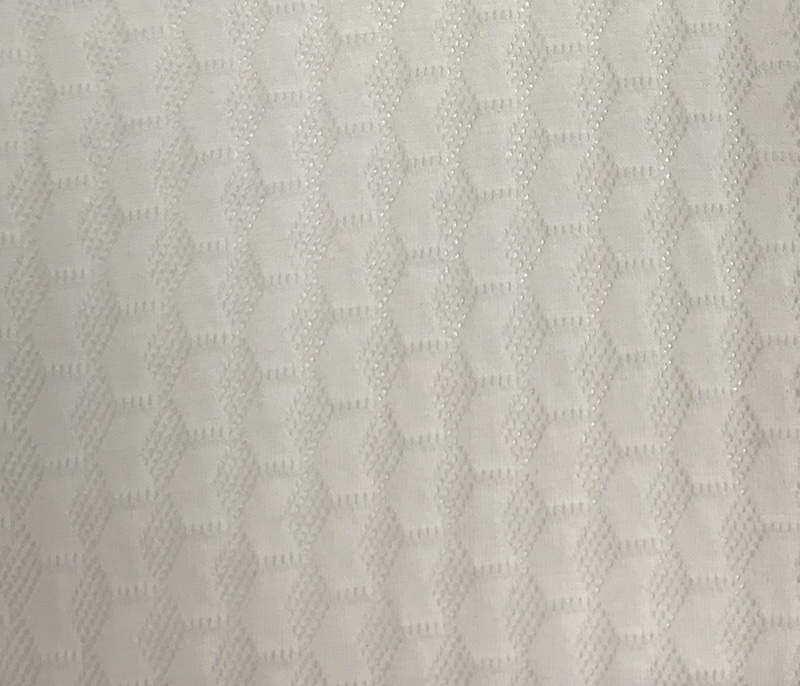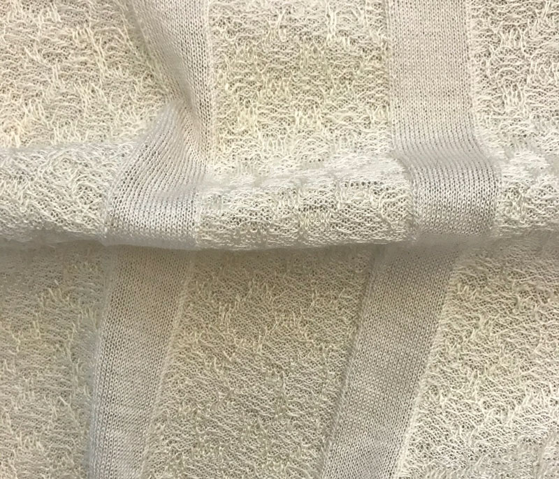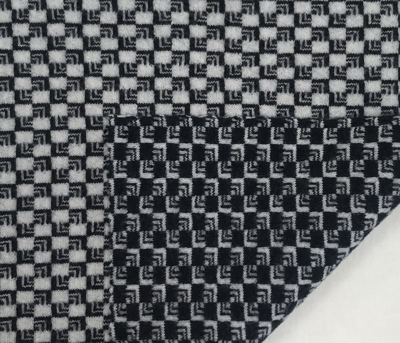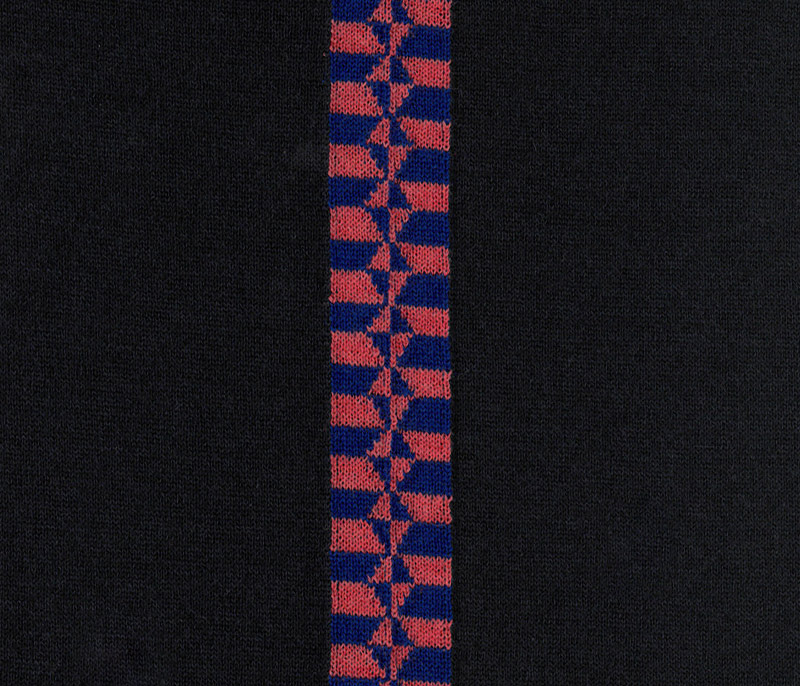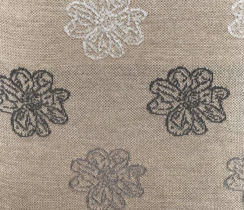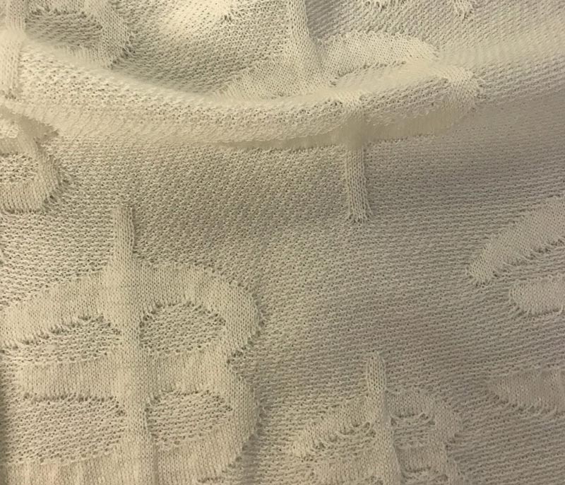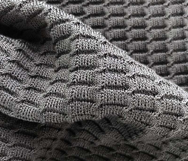 Patterned inlay yarn with buttoned appearance and rich composition.