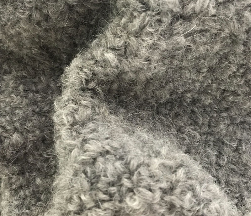 A voluminous boucle yarn with a precious composition mohair, wool and silk.